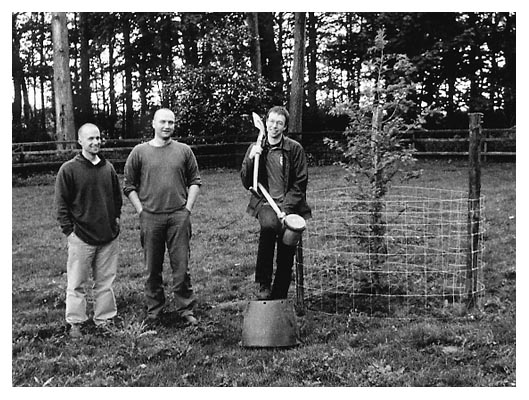 Schon zu Jans 18. Geburtstag pflanzten wir ihm zu Ehren einen Baum. Da ließen wir uns bei der Geburt von seiner und Andis Tochter Johanna Lone nicht lumpen und Gunter holte aus den Tiefen der Berliner Baumschulen einen chinesischen Mammutbaum hervor. Den pflanzten wir ganz souverän auf einer der Weiden Süderholz'. Dieses Mal konnte sich Gunter auch noch daran erinnern. Beim ersten Mal hatte ihn vorher sein Pferd zu Klump getreten. Da war meist sehr viel Sinn in seinen damaligen Aussagen... |